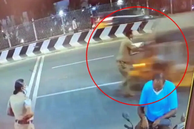 ಸಬ್ ಇನ್ಸ್ಪೆಕ್ಟರ್ ಬೋನ್ರಾಜ್ ನಂದಂಬಾಕ್ಕಂ ಪೊಲೀಸ್ ಠಾಣೆಯಲ್ಲಿ ಕಾರ್ಯನಿರ್ವಹಿಸುತ್ತಿದ್ದಾರೆ. ಏಪ್ರಿಲ್ 3 ರಂದು ರಾತ್ರಿ ನಂದಂಬಾಕ್ಕಂ ರಸ್ತೆಯಲ್ಲಿ ಸಿಬ್ಬಂದಿ ಜೊತೆ ವಾಹನ ತಪಾಸಣೆಯಲ್ಲಿ ತೊಡಗಿದ್ದರು. ಈ ವೇಳೆ ಎದುರಿನಿಂದ ವೇಗವಾಗಿ ಬರುತ್ತಿದ್ದ ಆಟೋ ರಿಕ್ಷಾ ನಿಲ್ಲಿಸುವಂತೆ ಬೋನ್ರಾಜ್ ಚಾಲಕನಿಗೆ ಸೂಚಿಸಿದ್ದಾರೆ. ಆದ್ರೆ ಚಾಲಕ ವಾಹನವನ್ನು ನಿಲ್ಲಿಸದೇ ಸಬ್ ಇನ್ಸ್ಪೆಕ್ಟರ್ ಮೇಲೆ ಗುದ್ದಿಸಿ ಪರಾರಿಯಾಗಿದ್ದಾನೆ. ಆರೋಪಿಯ ಪತ್ತೆಗೆ ಪೊಲೀಸರು ಬಲೆ ಬೀಸಿದ್ದಾರೆ..