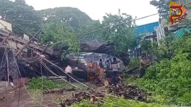 ಮರ ಬಿದ್ದ ರಭಸಕ್ಕೆ ಎರಡು, ಮೂರು ಅಂಗಡಿಗಳು ಜಖಂ ಆಗಿವೆ. ಜೊತೆಗೆ ವಿದ್ಯುತ್ ಕಂಬಗಳಿಗೂ ಹಾನಿಯಾಗಿದ್ದು, ವೈರ್ ಕಡಿತಗೊಂಡಿದೆ.