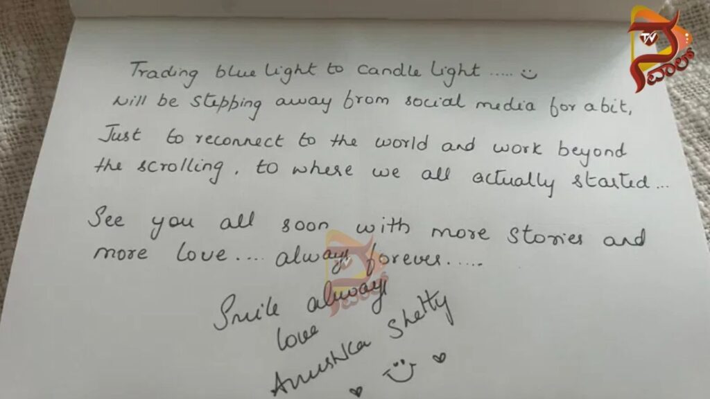 ಘಾಟಿ ಸಿನಿಮಾದ ಮೂಲಕ ಸೌಂಡ್ ಮಾಡಿದ್ದ ಅನುಷ್ಕಾ ಶೆಟ್ಟಿ ಇದೀಗ ಸೋಶಿಯಲ್ ಮೀಡಿಯಾ ಫಾಲೋವರ್ಸ್ಗಳಿಗೆ ಶಾಕಿಂಗ್ ನ್ಯೂಸ್ ಕೊಟ್ಟಿದ್ದಾರೆ. ಸೋಶಿಯಲ್ ಮೀಡಿಯಾದಿಂದ ದೂರಾಗುವ ಬಗ್ಗೆ ಹ್ಯಾಂಡ್ರೈಟ್ ಲೆಟರ್ ಬರೆದಿದ್ದು, ಕಾರಣ ಏನು ಅನ್ನೋದನ್ನೂ ಅವರೇ ಹಂಚಿಕೊಂಡಿದ್ದಾರೆ.
