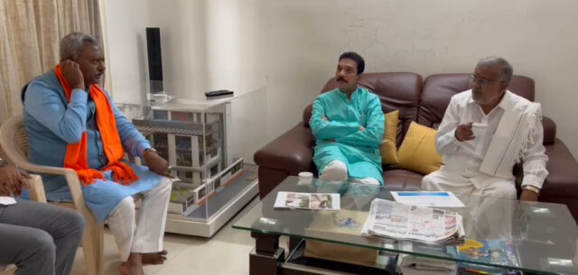 ಮೈಸೂರು(Mysuru): ಚಾಮುಂಡೇಶ್ವರಿ ಕ್ಷೇತ್ರದ ಶಾಸಕ ಜಿ.ಟಿ.ದೇವೇಗೌಡ ಅವರ ನಿವಾಸಕ್ಕೆ ಬಿಜೆಪಿ ರಾಜ್ಯ ಘಟಕದ ಅಧ್ಯಕ್ಷ ನಳಿನ್ ಕುಮಾರ್ ಕಟೀಲ್ ಗುರುವಾರ ಬೆಳಿಗ್ಗೆ ಭೇಟಿ ನೀಡಿದರು.