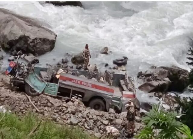 ಶ್ರೀನಗರ(Srinagar): ಇಂಡೊ–ಟಿಬೆಟ್ ಗಡಿ ಪೊಲೀಸ್ ಪಡೆಯ 37 ಸಿಬ್ಬಂದಿ ಮತ್ತು ಇಬ್ಬರು ಪೊಲೀಸರನ್ನು ಕರೆದೊಯ್ಯುತ್ತಿದ್ದ ಬಸ್ವೊಂದು ನದಿಗೆ ಉರುಳಿಬಿದ್ದಿದ್ದು, 7 ಮಂದಿ ಸಾವನ್ನಪ್ಪಿದ್ದಾರೆ.