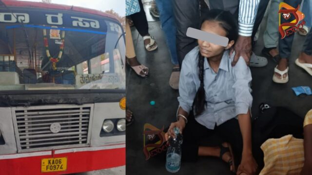 ವಿದ್ಯಾರ್ಥಿನಿ ಕಾಲಿನ ಮೇಲೆ ಹರಿದ ಬಸ್ ಟೈರ್ – ಕಾಲು ಮುರಿತ
