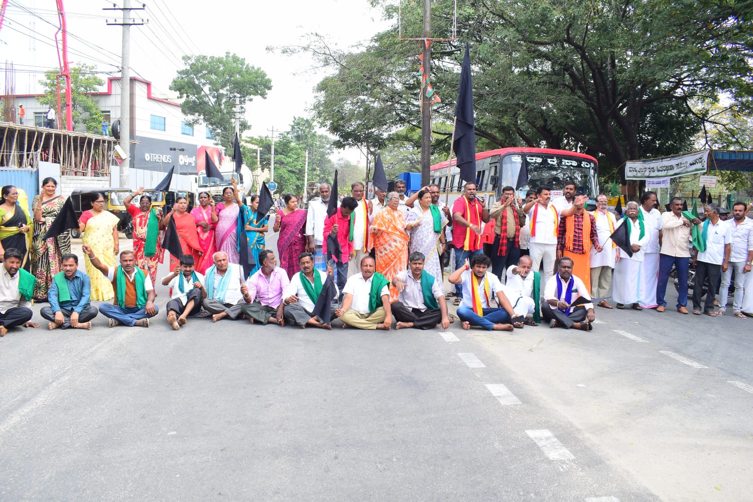 ಬೆಂಗಳೂರು-ಮೈಸೂರು ಹೆದ್ದಾರಿಯಲ್ಲಿನ ವಾಹನಗಳ ಸಂಚಾರವನ್ನು ತಡೆದ ಪ್ರತಿಭಟನಾಕಾರರು, ರಸ್ತೆಯಲ್ಲೇ ಕೆಲ ಹೊತ್ತು ಧರಣಿ ಕುಳಿತರು. ಕಪ್ಪು ಬಾವುಟ ಪ್ರದರ್ಶಿಸಿ ಕೇಂದ್ರ -ರಾಜ್ಯ ಸರ್ಕಾರ, ಕಾವೇರಿ ನೀರು ನಿರ್ವಹಣಾ ಪ್ರಾಧಿಕಾರದ ವಿರುದ್ಧ ಧಿಕ್ಕಾರ ಕೂಗಿದರು.