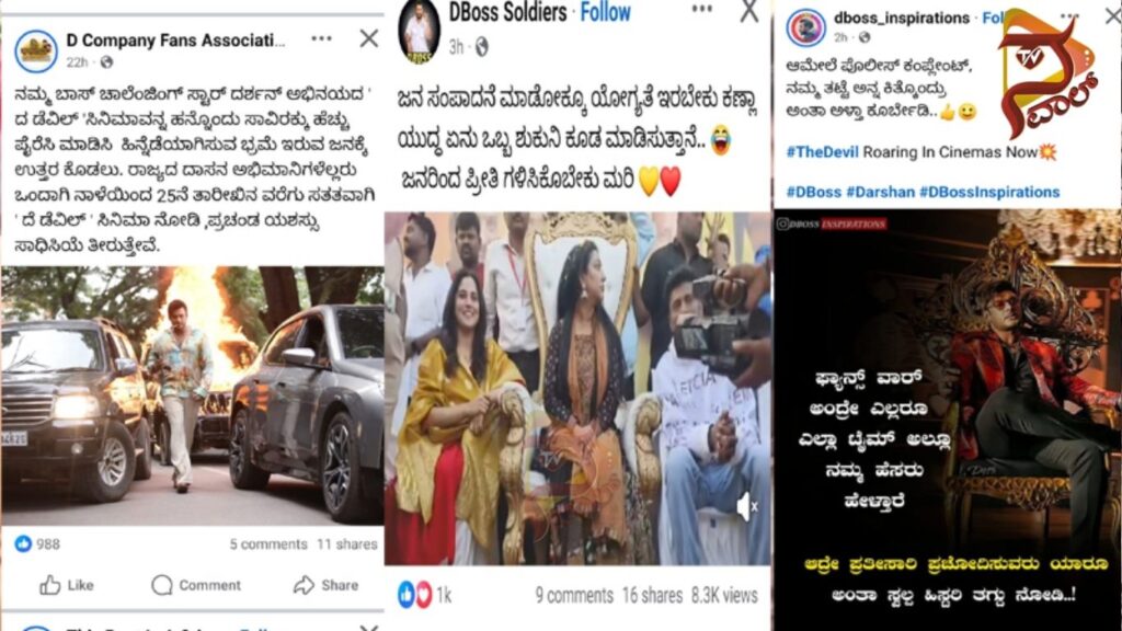 ಮುಂದುವರಿದು… ನೀವೇ ಯುದ್ಧಕ್ಕೆ ಕರೆದ್ರೆ ನಾವ್ ಬರದೇ ಇರ್ತೀವಾ ಅಂತ ಹೇಳೋದ್ರ ಜೊತೆಗೆ, ಯುದ್ಧ ಏನು ಒಬ್ಬ ಶಕುನಿ ಕೂಡ ಮಾಡ್ತಾನೆ ಜನರ ಪ್ರೀತಿ ಗಳಿಸಿ ಅಂತ ಕುಟುಕಿದ್ದಾರೆ. ಅಲ್ಲದೇ ಡಿಬಾಸ್ ಫ್ಯಾನ್ಸ್. ವಿಜಯಲಕ್ಷ್ಮಿ ದಾವಣಗೆರೆಯಲ್ಲಿನ ಫೋಟೋ ಹಾಕಿ ಟಾಂಗ್ ಕೊಡ್ತಿದ್ದಾರೆ. ಇನ್ನೂ ಕೆಲವರು ಡೆವಿಲ್ ಸಿನಿಮಾದಲ್ಲಿ ದರ್ಶನ್ ಮಾಸ್ ಲುಕ್ ಫೋಟೋವನ್ನ ಹಂಚಿಕೊಂಡು ಸುದೀಪ್ ವಿರುದ್ಧ ಮಾತಿನಲ್ಲೇ ಟಾಂಗ್ ಕೊಡ್ತಿದ್ದಾರೆ.