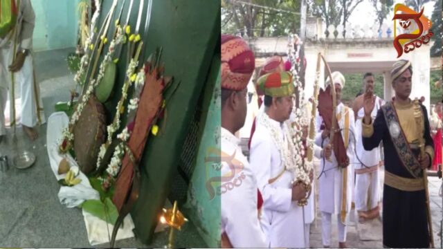 ಮೈಸೂರು : ದೇಶದೆಲ್ಲೆಡೆ ಇಂದು ಆಯುಧ ಪೂಜೆ. ಮೈಸೂರಿನ ಬಾವಿಲಾಸ ಅರಮನೆಯಲ್ಲಿ ಆಯುಧಪೂಜೆ ಸಂಭ್ರಮ ಕಳೆಗಟ್ಟಿದ್ದು, ಯದುವೀರ್ ಒಡೆಯರ್ ಅವರು ಪೂಜೆ ಕಾರ್ಯ ನೆರವೇರಿಸಿದ್ದಾರೆ.