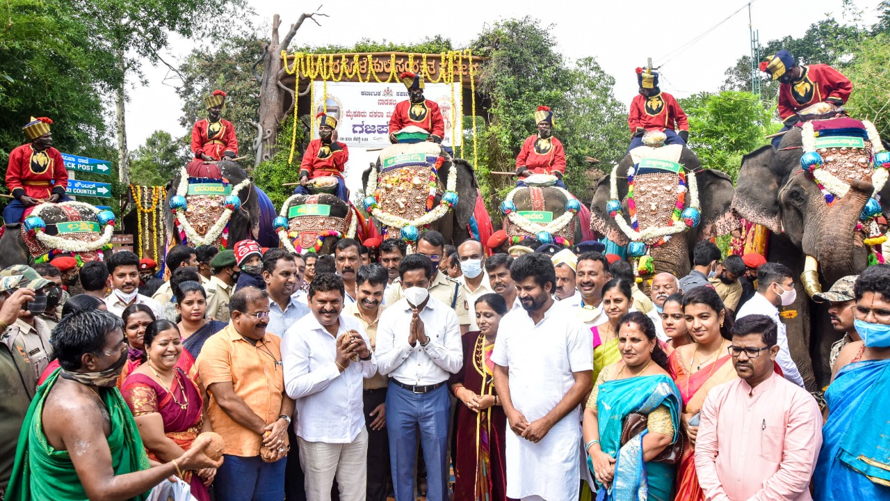 ನಾಗರಹೊಳೆ ಹುಲಿ ಸಂರಕ್ಷಿತ ಪ್ರದೇಶದ ಬಳ್ಳೆ ಆನೆ ಶಿಬಿರದ ಅರ್ಜುನ (63).* ಮಡಿಕೇರಿ ವಿಭಾಗದ ದುಬಾರೆ ಆನೆ ಶಿಬಿರದ ವಿಕ್ರಮ (59), ಧನಂಜಯ (44), ಕಾವೇರಿ (45), ಗೋಪಿ (41), ಶ್ರೀರಾಮ (40), ವಿಜಯ (63).
