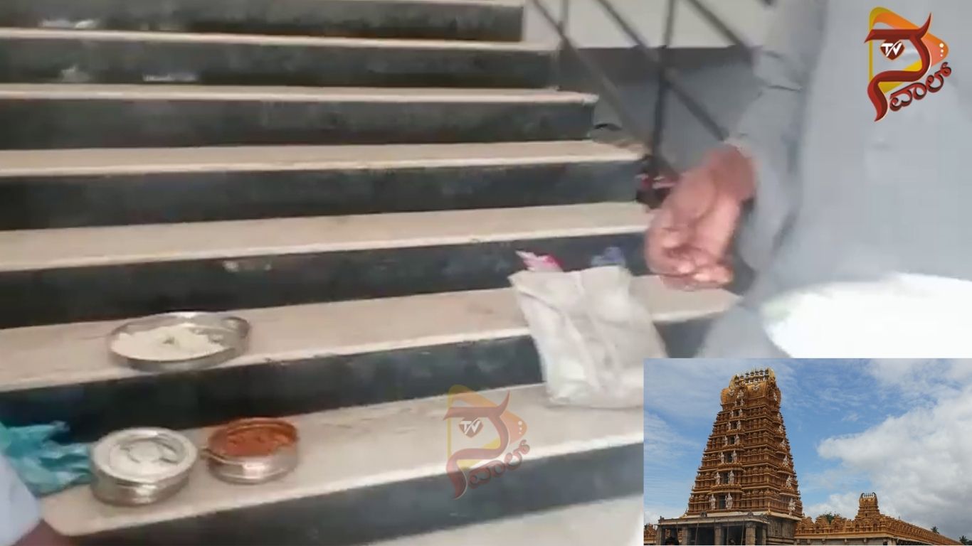 ಮೈಸೂರು : ದಕ್ಷಿಣ ಕಾಶಿ ನಂಜನಗೂಡು ನಂಜುಂಡೇಶ್ವರ ದೇವಸ್ಥಾನದ ದಾಸೋಹ ಭವನದ ದ್ವಾರದ ಬಳಿ ಸ್ಥಳೀಯ ವ್ಯಾಪಾರಿ ಮಾಂಸಹಾರ ಸೇವಿಸಿದ್ದಾನೆ.