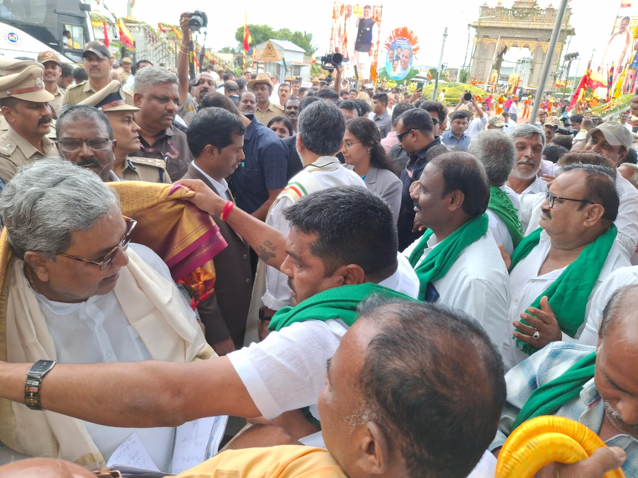 ರೈತರ ಬಳಿ ಬಾರದ ಡಿಕೆಶಿ: ಇದೇ ಸಂದರ್ಭದಲ್ಲಿ ವಿವಿಧ ಸಂಘಟನೆಗಳ ಮನವಿ ಸ್ವೀಕರಿಸಲು ಮುಖ್ಯಮಂತ್ರಿ ಸಿದ್ದರಾಮಯ್ಯ ಅವರ ಜತೆ ಆಗಮಿಸಿದ ಉಪಮುಖ್ಯಮಂತ್ರಿ ಡಿ.ಕೆ.ಶಿವಕುಮಾರ್ ಅವರು, ಸಿಎಂ ರೈತಸಂಘಟನೆಗಳ ಮುಖಂಡರೊಂದಿಗೆ ಮಾತನಾಡು ಆಗಮಿಸಿದ ವೇಳೆ ಡಿ.ಕೆ.ಶಿವಕುಮಾರ್ ಮಾತ್ರ ಜತೆಗೆ ಬಾರದೆ ಹಿಂದೆಸರಿದರು. ಬಹುಶಃ ಮಂಡ್ಯದವರು ಛತ್ರಿಗಳು ಎಂಬ ತಮ್ಮ ಈ ಹಿಂದಿನ ಹೇಳಿಕೆ ಬಗ್ಗೆ ರೈತರು ಪ್ರಸ್ತಾಪಿಸಬಹುದು ಎಂಬ ಮುಜುಗರದಿಂದ ಹಿಂದೆ ಸರಿದಿದ್ದಾರೆ ಎಂದು ರೈತರು ಹೇಳಿದರು.