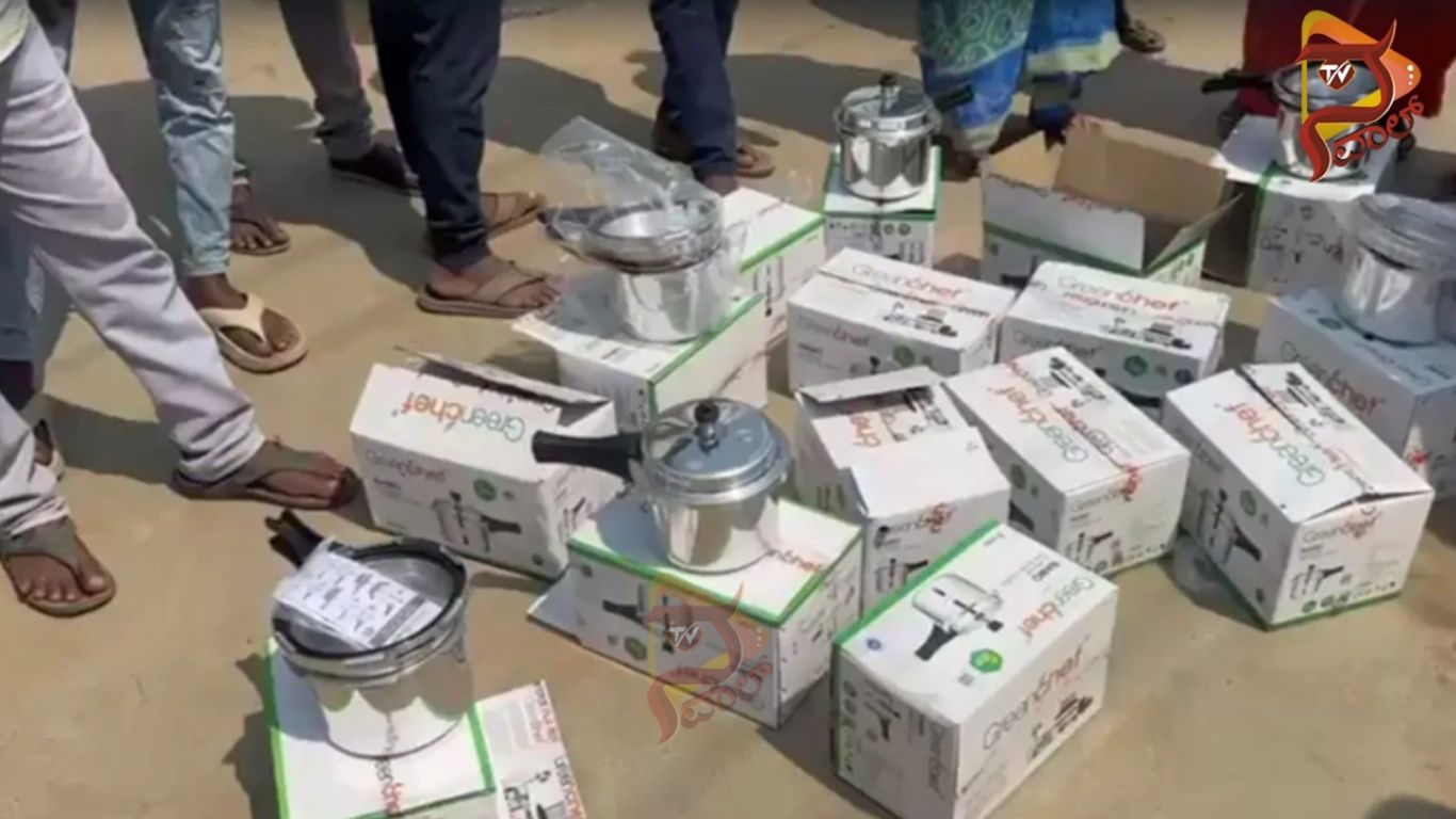 ಇದರಿಂದ ಕಾಂಗ್ರೆಸ್‌ ಅಭ್ಯರ್ಥಿ ಎಂ. ಹರಿಬಾಬು ವಿರುದ್ಧ ಮತದಾರರು ತೀವ್ರ ಆಕ್ರೋಶ ಹೊರಹಾಕಿದ್ದಾರೆ. ಅಭ್ಯರ್ಥಿ ಕೊಟ್ಟಿದ್ದ ಕುಕ್ಕರ್‌ಗಳನ್ನ ಬೀದಿಗೆ ಎಸೆದು ಬಾಯಿಗೆ ಬಂದಂತೆ ಬೈಯ್ದಿದ್ದಾರೆ. ಈ ಕುರಿತ ವಿಡಿಯೋ ಈಗ ಸೋಷಿಯಲ್‌ ಮೀಡಿಯಾದಲ್ಲಿ ಸದ್ದು ಮಾಡುತ್ತಿದೆ.