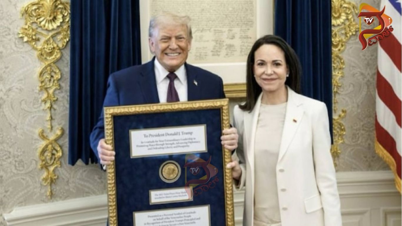 ವಾಷಿಂಗ್ಟನ್‌ : ಅಮೆರಿಕದ ಅಧ್ಯಕ್ಷ ಡೊನಾಲ್ಡ್‌ ಟ್ರಂಪ್‌ ಅವರಿಗೆ ಕೊನೆಗೂ ನೊಬೆಲ್‌ ಶಾಂತಿ ಪ್ರಶಸ್ತಿ ಸಿಕ್ಕಿದೆ. 2025ನೇ ಸಾಲಿನ ನೊಬೆಲ್ ಶಾಂತಿ ಪ್ರಶಸ್ತಿ ವಿಜೇತೆ ವೆನೆಜುವೆಲಾದ ವಿರೋಧ ಪಕ್ಷದ ಮಾರಿಯಾ ಕೊರಿನಾ ಮಚಾದೋ ಅವರು ತನಗೆ ಸಿಕ್ಕಿದ್ದ ಪ್ರಶಸ್ತಿಯನ್ನು ಟ್ರಂಪ್‌ ಅವರಿಗೆ ನೀಡಿದ್ದಾರೆ. ನೆನ್ನೆ (ಗುರುವಾರ) ಶ್ವೇತಭವನದಲ್ಲಿ ನಡೆದ ಕಾರ್ಯಕ್ರದಲ್ಲಿ ಮಾರಿಯಾ ಕೊರಿನಾ ಮಚಾದೊ ಅವರು ತಮ್ಮ ನೊಬೆಲ್ ಶಾಂತಿ ಪ್ರಶಸ್ತಿಯನ್ನು ಟ್ರಂಪ್ ಅವರಿಗೆ ಹಸ್ತಾಂತರ ಮಾಡಿದರು.