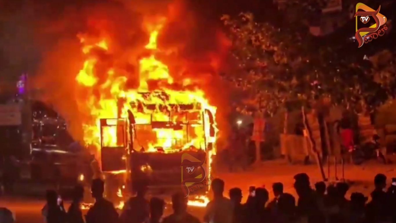 ಹೈದರಾಬಾದ್ : ಚಲಿಸುತ್ತಿದ್ದ ಖಾಸಗಿ ಬಸ್ನಲ್ಲಿ ಏಕಾಏಕಿ ಬೆಂಕಿ ಕಾಣಿಸಿಕೊಂಡು ಸಂಪೂರ್ಣವಾಗಿ ಸುಟ್ಟು ಕರಕಲಾಗಿರುವ ಘಟನೆ ಹೈದರಾಬಾದ್ನ ಕೆಪಿಎಚ್ಬಿಯಲ್ಲಿ ನಡೆದಿದೆ. ಸಿಬ್ಬಂದಿಯ ಜಾಗರೂಕತೆಯಿಂದ ಬಸ್ನಲ್ಲಿ ಪ್ರಯಾಣಿಸುತ್ತಿದ್ದ 18ಕ್ಕೂ ಹೆಚ್ಚು ಪ್ರಯಾಣಿಕರು ಪ್ರಾಣಾಪಾಯದಿಂದ ಪಾರಾಗಿದ್ದಾರೆ. ಖಾಸಗಿ ಬಸ್ ಹೊತ್ತಿಯುರಿಯುತ್ತಿರುವ ವಿಡಿಯೋ ಸಾಮಾಜಿಕ ಜಾಲತಾಣದಲ್ಲಿ ವೈರಲ್ ಆಗಿದೆ.