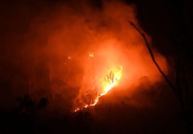 ಬೆಂಕಿಯು ವ್ಯಾಪಕವಾಗಿ ಹರಡುತ್ತಿದ್ದು ಅಗ್ನಿಶಾಮಕ ದಳದ ಸಿಬ್ಬಂದಿ ಬೆಂಕಿ ನಂದಿಸುವ ಕಾರ್ಯದಲ್ಲಿ ನಿರತರಾಗಿದ್ದಾರೆ.
