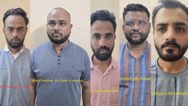 ಪಿಎ ಮೊಹಮ್ಮದ್ ನಯಿಮೋದ್ದಿನ್, ವಾಜೀದ್ ಇಮ್ರಾನ್, ಮಿರ್ಜಾ ಬೇಗ್, ನಸೀರ್ ಅಹ್ಮದ್ ಮತ್ತು ಮೊಹಮ್ಮದ್ ರೆಹಮಾನ್ ಬಂಧಿತರು. ಬಂಧಿತರಿಂದ 30 ಲಕ್ಷ ರೂ. ಹಣ ಜಪ್ತಿ ಮಾಡಿಕೊಂಡಿದ್ದು, ಬ್ರಹ್ಮಪುರ ಪೊಲೀಸ್ ಠಾಣೆಯಲ್ಲಿ ಪ್ರಕರಣ ದಾಖಲಾಗಿದೆ.