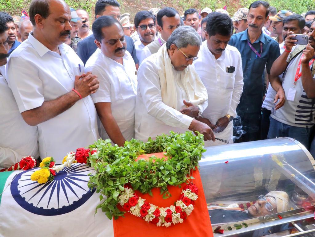 ಬುಧವಾರ ಮಧ್ಯಾಹ್ನ 1ಗಂಟೆಗೆ ಆಗಮಿಸಿದ ಮುಖ್ಯಮಂತ್ರಿ ಸಿದ್ದರಾಮಯ್ಯ ಅವರು ಪಾರ್ಥಿವ ಶರೀರಕ್ಕೆ ಹೂಗು ಚ್ಚವಿಟ್ಟು ನಮಿಸಿದರು. ಇದೇ ವೇಳೆ ಪೋಲಿಸ್ ಸಿಬ್ಬಂದಿಗಳು ಸಕಲ ಸರ್ಕಾರಿ ಗೌರವವನ್ನು ಸಲ್ಲಿಸಿದರು.