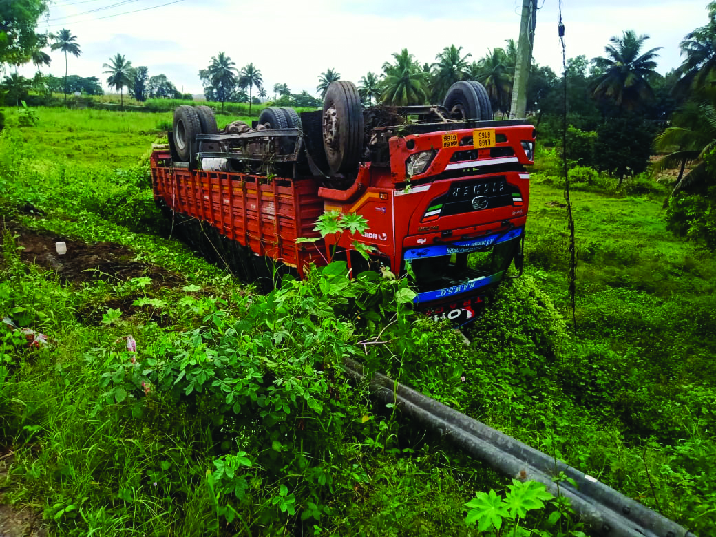 ಶ್ರೀರಂಗಪಟ್ಟಣ:ಚಾಲಕನ ನಿಯಂತ್ರಣ ಕಳೆದುಕೊಂಡು ಗೂಡ್ಸ್ ಲಾರಿಯೊಂದು ರಸ್ತೆ ಬದಿ ಹಳ್ಳಕ್ಕೆ ಉರುಳಿದ ಘಟನೆ ಮಂಗಳವಾರ ಮುಂಜಾನೆ ತಾಲೂಕಿನ ದರಸಗುಪ್ಪೆ ಬಳಿ ನಡೆದಿದೆ.