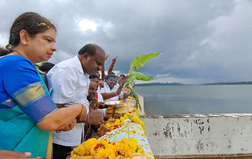 ಕಣ್ವ ಜಲಾಶಯಕ್ಕೆ ಬಾಗಿನ ಅರ್ಪಿಸಿದ ಎಚ್.ಡಿ ಕುಮಾರಸ್ವಾಮಿ ದಂಪತಿ