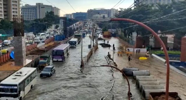 ರಾತ್ರಿ ಸುರಿದ ಧಾರಾಕಾರ ಮಳೆಗೆ ವಾಹನ ಸವಾರರು ಪರದಾಡಿದರು. ಶನಿವಾರ ಸುರಿದಿದ್ದ ಮಳೆಗೆ ಸಾಯಿ ಲೇಔಟ್ ಜನರು ಇನ್ನೂ ಪರದಾಡುತ್ತಿದ್ದಾರೆ. ಇಡೀ ಏರಿಯಾಗೇ ಏರಿಯಾನೇ ಜಲಾವೃತಗೊಂಡಿದೆ. ರಸ್ತೆ ತುಂಬ ನೀರು, ಮನೆಗಳಿಗೂ ನೀರು ನುಗ್ಗಿ ಸಾಯಿಲೇಔಟ್ ಕೆರೆಯಂತಾಗಿದೆ. ರಾತ್ರಿಯಿಡಿ ಜಾಗರಣೆ ಮಾಡಿ ಬೆಳಗ್ಗೆಯಾದ್ರೂ ಮನೆಗಳಿಗೆ ನುಗ್ಗಿದ್ದ ರಾಜಕಾಲುವೆ ನೀರು ತಗ್ಗದೇ ನಿವಾಸಿಗಳು ಹಿಂಸೆ ಅನುಭವಿಸಿದರು.