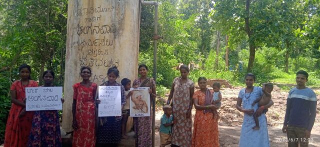 ಇದುವರೆಗೂ ಇಲ್ಲಿ ಅಂಗನವಾಡಿ ಕಟ್ಟಡವನ್ನು ಕಟ್ಟಲು ಅನುಮತಿ ನೀಡದೇ ಇರುವ ಕಾರಣ ಕಟ್ಟಡ ಕಟ್ಟಲು ಬಂದ ಅನುದಾನವು ಸಹ ಬಳಕೆ ಆಗುತ್ತಿಲ್ಲ. ಕಳೆದ ಮೂರು ವರ್ಷಗಳಿಂದ ಸಮಸ್ಯೆ ಹೆಚ್ಚಾಗಿದ್ದು. ಆನೆ ದಾಳಿ , ಮಳೆಯಿಂದಾಗಿ ಅಂಗನವಾಡಿ ಕಟ್ಟಡ ಸಂಪೂರ್ಣವಾಗಿ ಶಿಥಿಲವಾಗಿದ್ದು. ಕಳೆದ ಎರಡು ವರ್ಷಗಳಿಂದ ಇಲ್ಲಿಯ ಸಣ್ಣ ಮಕ್ಕಳು ಅಂಗನವಾಡಿಯಲ್ಲಿ ಕುಳಿತು ಆಟ,ಕಲಿಕೆಯಿಂದ ವಂಚಿತರಾಗುತ್ತಿದ್ದಾರೆ. ನೂರಾರು ಕೋಟಿ ಪೋಷಣ್ ಅಭಿಯಾನದ ಹೆಸರಿನಲ್ಲಿ ಕೇವಲ ಜಾಹೀರಾತು ಪ್ರಚಾರಗಳಿಗೆ ಖರ್ಚು ಮಾಡುವ ಸರ್ಕಾರಗಳು ಶೈಕ್ಷಣಿಕವಾಗಿ, ಆರ್ಥಿಕವಾಗಿ ಹಿಂದುಳಿದಿರುವ ಆದಿವಾಸಿ ಮಕ್ಕಳ ಅಭಿವೃದ್ಧಿಯನ್ನು ಕಡೆಗಣಿಸುತ್ತಿರುವುದನ್ನು ಖಂಡಿಸುವುದಾಗಿ ತಿಳಿಸಿದರು.