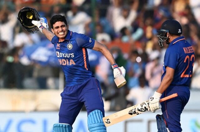 49ನೇ ಓವರ್ನಲ್ಲಿ ಹ್ಯಾಟ್ರಿಕ್ ಸಿಕ್ಸರ್ ಸಿಡಿಸಿ ಗಿಲ್ 200 ರನ್ಗಳ ಗಡಿ ದಾಟಿದರು. ಏಕದಿನ ಕ್ರಿಕೆಟ್ನಲ್ಲಿ ಅತಿ ವೇಗದಲ್ಲಿ (19 ಇನ್ನಿಂಗ್ಸ್) ಸಾವಿರ ರನ್ ಪೂರೈಸಿದ ಭಾರತೀಯ ಬ್ಯಾಟರ್ ಎಂಬ ಖ್ಯಾತಿಗೂ ಗಿಲ್ ಪಾತ್ರರಾದರು. 149 ಎಸೆತಗಳನ್ನು ಎದುರಿಸಿದ ಗಿಲ್, 19 ಬೌಂಡರಿ ಹಾಗೂ ಒಂಬತ್ತು ಸಿಕ್ಸರ್’ಗಳ ನೆರವಿನಿಂದ 208 ರನ್ ಗಳಿಸಿದರು.