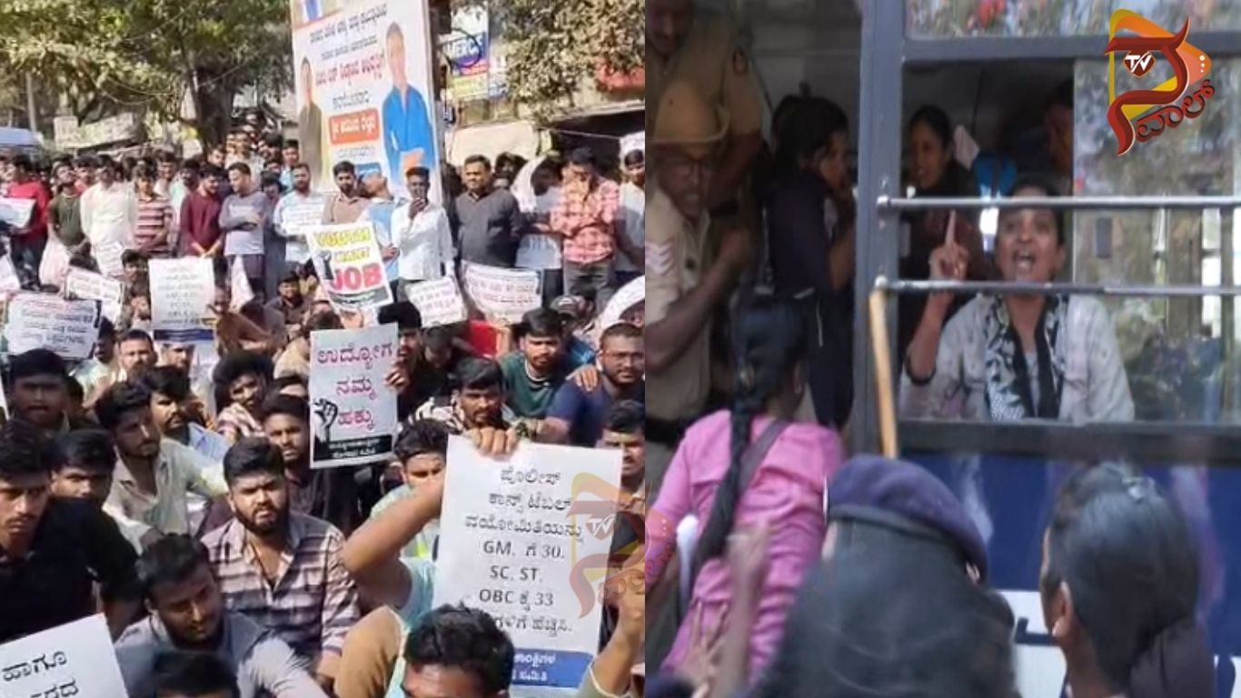 ಧಾರವಾಡ : ವಿದ್ಯಾರ್ಥಿಗಳಿಗೆ ಉದ್ಯೋಗ ನೀಡುವಂತೆ ಒತ್ತಾಯಿಸಿ ನಗರದ ಶ್ರೀನಗರ ಸರ್ಕಲ್ನಲ್ಲಿ ಉದ್ಯೋಗಾಕಾಂಕ್ಷಿಗಳು ಪ್ರತಿಭಟನಾ ರ್ಯಾಲಿ ನಡೆಸಿದ್ದು, ಹಲವು ವಿದ್ಯಾರ್ಥಿಗಳನ್ನು ಪೊಲೀಸರು ವಶಕ್ಕೆ ಪಡೆದಿದ್ದಾರೆ.