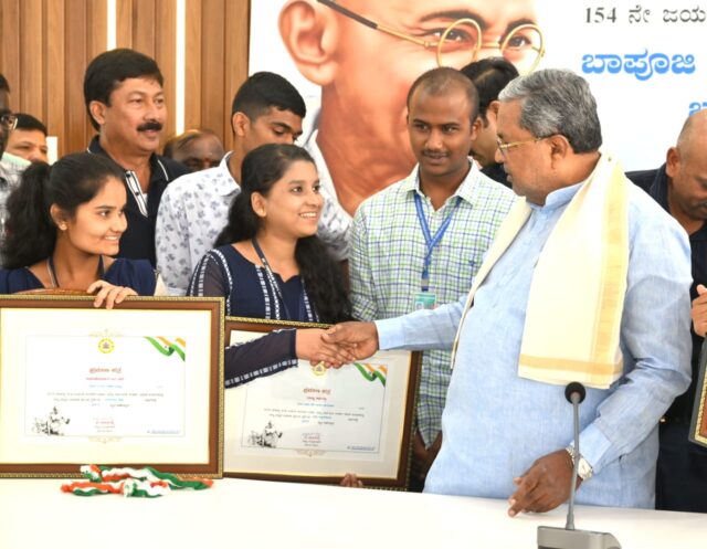 ಪದವಿ ವಿಭಾಗದಲ್ಲಿ ಜಿಲ್ಲಾ ಮಟ್ಟದಲ್ಲಿ ಪ್ರಥಮ ಸ್ಥಾನ ಪಡೆದ ಜೆ.ಎಸ್.ಎಸ್ ಕಾಲೇಜಿನ ತೃತೀಯ ಬಿ.ಎಸ್ಸಿ ವಿದ್ಯಾರ್ಥಿನಿ ಕುಸುಮಬಾಯಿ ಪ್ರಬಂಧ ರಾಜ್ಯ ಮಟ್ಟಕ್ಕೆ ಆಯ್ಕೆಯಾಗಿ,ರಾಜ್ಯಮಟ್ಟದ ಸ್ಪರ್ಧೆಯಲ್ಲಿ ತೃತೀಯ ಸ್ಥಾನ ಗಳಿಸಿದ ಹಿನ್ನೆಲೆಯಲ್ಲಿ ಇಂದು ಮುಖ್ಯಮಂತ್ರಿಗಳಾದ ಸಿದ್ದರಾಮಯ್ಯ ಅವರು ತಮ್ಮ ಗೃಹ ಕಛೇರಿ ಕೃಷ್ಣಾದಲ್ಲಿ ವಿಧ್ಯಾರ್ಥಿನಿಗೆ ಪ್ರಶಸ್ತಿ ಹಾಗೂ ನಗದು ಬಹುಮಾನ 11 ಸಾವಿರ ರೂಗಳನ್ನು ವಿತರಿಸಿದರು.