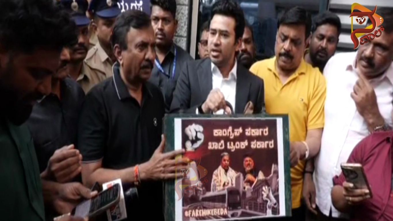 ಬೆಂಗಳೂರು : ಮೆಟ್ರೋ ದರ ಏರಿಸಿದ್ದನ್ನು ಖಂಡಿಸಿ ಆರ್ವಿ ಮೆಟ್ರೋ ನಿಲ್ದಾಣದಲ್ಲಿ ಪ್ರತಿಭಟನೆ ನಡೆಸಿದ ಬೆಂಗಳೂರು ದಕ್ಷಿಣ ಕ್ಷೇತ್ರ ಬಿಜೆಪಿ ಸಂಸದ ತೇಜಸ್ವಿ ಸೂರ್ಯ ಮತ್ತು ಜಯನಗರದ ಶಾಸಕ ರಾಮಮೂರ್ತಿ ಅವರನ್ನು ಪೊಲೀಸರು ವಶಕ್ಕೆ ಪಡೆದಿದ್ದಾರೆ. ಪ್ರತಿಭಟನೆಯ ಹಿನ್ನೆಲೆಯಲ್ಲಿ ಪೊಲೀಸರು ನೋಟಿಸ್ ನೀಡಿದ್ದರೂ ಇಂದು ಬಿಜೆಪಿ ಕಾರ್ಯಕರ್ತರು ಪ್ರತಿಭಟನೆ ನಡೆಸಿದರು. ಖಾಲಿ ಟ್ರಂಕ್ ಹಿಡಿದುಕೊಂಡು ಬಂದ ತೇಜಸ್ವಿ ಸೂರ್ಯ ಟ್ರಂಕ್ ತೆರೆದು ರಾಜ್ಯ ಸರ್ಕಾರ ಖಾಲಿಯಾಗಿದೆ ಎಂದು ಹೇಳಿದರು.
