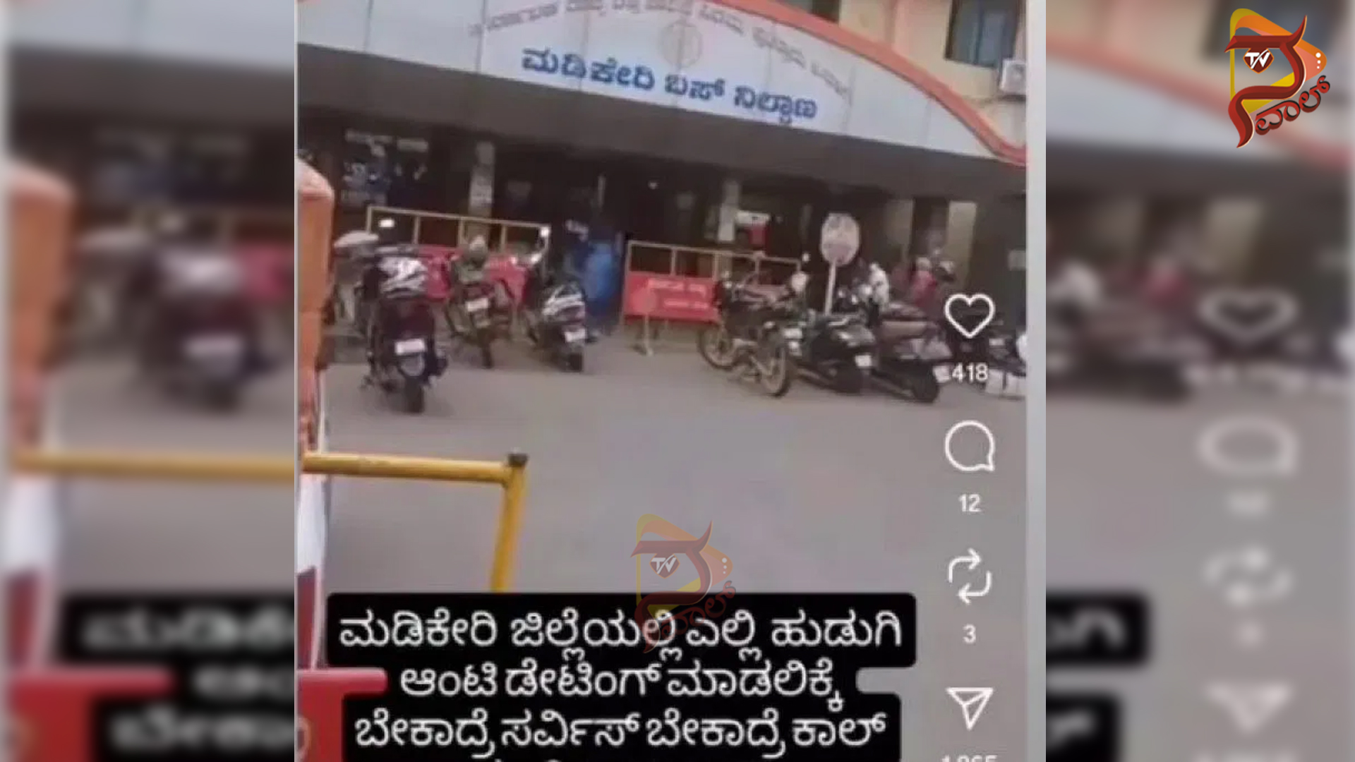 ಮಡಿಕೇರಿ : ಕರ್ನಾಟಕದ ಕಾಶ್ಮೀರ ಮತ್ತು ಭಾರತದ ಸ್ಕಾಟ್ಲೆಂಡ್ ಎಂದು ಕರೆಸಿಕೊಳ್ಳುವ ಕೊಡಗಿನಲ್ಲಿ ಪ್ರವಾಸಿಗರಿಗೆ ಹುಡುಗಿಯರು ಮತ್ತು ಮಹಿಳೆಯರು ಲಭ್ಯವಿದ್ದಾರೆ ಎಂದು ದುಷ್ಟರು ಸಾಮಾಜಿಕ ಜಾಲತಾಣಗಳಲ್ಲಿ ಪೋಸ್ಟ್ ಹಾಕಿದ್ದಾರೆ.