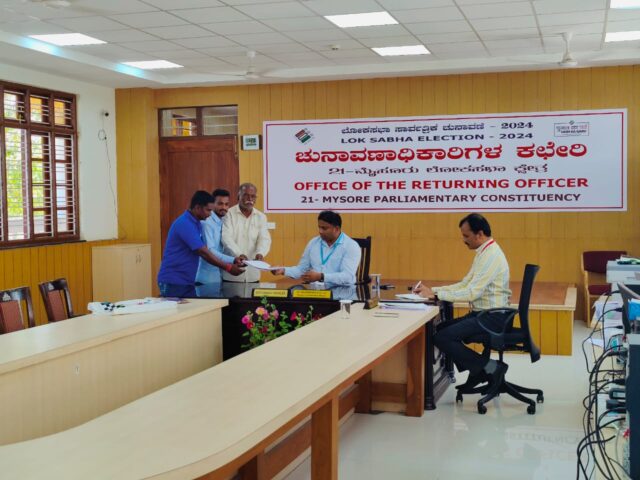 ಮೈಸೂರು: ಮೈಸೂರು ಕೊಡಗು ಲೋಕಸಭಾ ಸಾರ್ವತ್ರಿಕ ಚುನಾವಣೆ 2024 ಕ್ಕೆ ಸಂಬಂಧಿಸಿದಂತೆ ನಾಮಪತ್ರ ಸಲ್ಲಿಸಲು ಇಂದು (02-04-2024) 5 ಅಭ್ಯರ್ಥಿಗಳಿಂದ ನಾಮಪತ್ರ ಸಲ್ಲಿಕೆಯಾಗಿರುತ್ತದೆ.