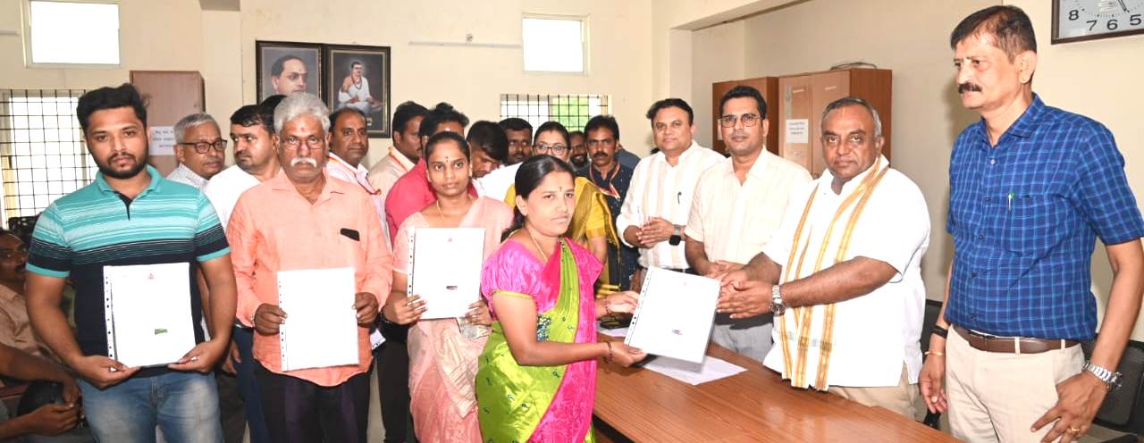 ಮೈಸೂರು : ಕೃಷ್ಣರಾಜ ವಿಧಾನಸಭಾ ಕ್ಷೇತ್ರದ ವ್ಯಾಪ್ತಿಯ ಮಹಾನಗರ ಪಾಲಿಕೆ ಕಚೇರಿ-೧ ಮತ್ತು ೨ರಲ್ಲಿ ಶಾಸಕ ಶ್ರೀವತ್ಸ ಅವರು ೨೫೦ಕ್ಕೂ ಹೆಚ್ಚು ಮಂದಿಗೆ ಇ-ಖಾತೆ ಪತ್ರ ಹಂಚಿಕೆ ಮಾಡಿದರು.