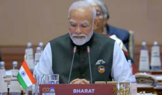 ಪ್ರಧಾನಿ ಮೋದಿ ಅವರು ಜಿ20 ಸಭೆಯನ್ನು ಉದ್ದೇಶಿಸಿ ಮಾತನಾಡುವ ವೇಳೆ ಅವರ ಮುಂದಿದ್ದ ದೇಶದ ನಾಮಫಲಕದಲ್ಲಿ ಇಂಡಿಯಾ ಬದಲು ಭಾರತ ಎಂದು ಬರೆಯಲಾಗಿದೆ. ಇದುವರೆಗೂ ಇಂಡಿಯಾ ಎಂದು ಬರೆಯಲಾಗುತ್ತಿತ್ತು. ಆದರೆ, ಭಾರತ ಎಂಬ ಹೆಸರನ್ನು ಮುಂಚೂಣಿಗೆ ತರಲಾಗುತ್ತಿದ್ದು, ಶೀಘ್ರದಲ್ಲೇ ಇಂಡಿಯಾ ಹೆಸರು ಭಾರತ ಎಂದು ಅಧಿಕೃತಗೊಳ್ಳಲಿದೆ.