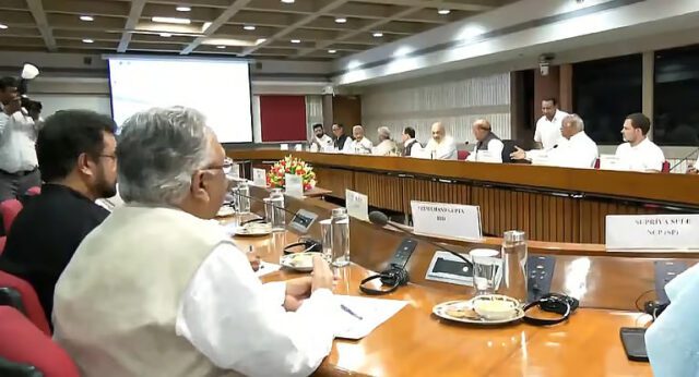 ಹೊಸದಿಲ್ಲಿ : ಪಾಕ್ ಉಗ್ರರ ಒಂಭತ್ತು ನೆಲೆಗಳನ್ನು ಭಾರತೀಯ ಸೇನೆ ಧ್ವಂಸ ಮಾಡಿದ ಹಿನ್ನಲೆ ‘ಆಪರೇಷನ್ ಸಿಂಧೂರ್’ ಕಾರ್ಯಾಚರಣೆ ಕುರಿತು ಗುರುವಾರ ನಡೆದ ಸರ್ವಪಕ್ಷಗಳ ಸಭೆಯಲ್ಲಿ ವಿರೋಧ ಪಕ್ಷಗಳು ಕೇಂದ್ರ ಸರ್ಕಾರದ ನಡೆಯನ್ನು ಬೆಂಬಲಿಸಿದವು.