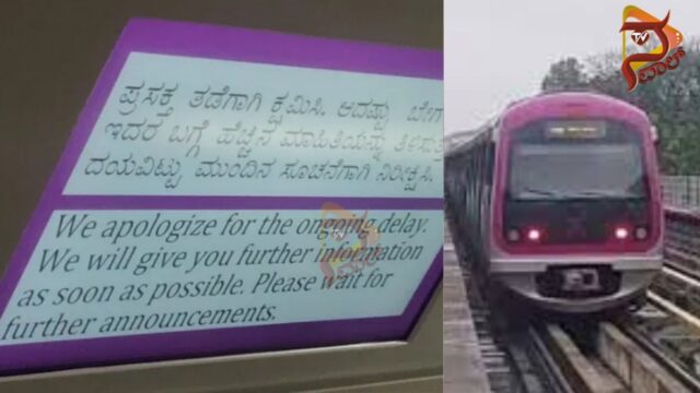ಮೆಟ್ರೋ ನಿಲ್ದಾಣದಲ್ಲಿ ಪ್ರಯಾಣಿಕರ ದಟ್ಟಣೆ ಹೆಚ್ಚಾಗಿದ್ದು, ಹೊರ ಬರಲು ಹರಸಾಹಸಪಟ್ಟಿದ್ದಾರೆ. ನೇರಳೆ ಮಾರ್ಗದ ಚಲ್ಲಘಟ್ಟದಿಂದ ವೈಟ್ ಫೀಲ್ಡ್ ಕಡೆ ಸಂಚರಿಸುತ್ತಿದ್ದ ರೈಲು, ಟ್ರ್ಯಾಕ್ನ ಅರ್ಧ ಮಾರ್ಗದಲ್ಲಿ ನಿಂತಿದೆ.