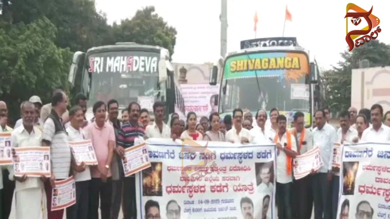 ದಾವಣಗೆರೆ : ಶ್ರೀ ಕ್ಷೇತ್ರ ಧರ್ಮಸ್ಥಳದ ವಿರುದ್ಧ ನಡೆಯುತ್ತಿರುವ ಷಡ್ಯಂತ್ರ ವಿರೋಧಿಸಿ ದಾವಣಗೆರೆಯಲ್ಲಿ ನೂರಾರು ಭಕ್ತರು ಧರ್ಮಸ್ಥಳಕ್ಕೆ ಯಾತ್ರೆ ಹೊರಟಿದ್ದಾರೆ.