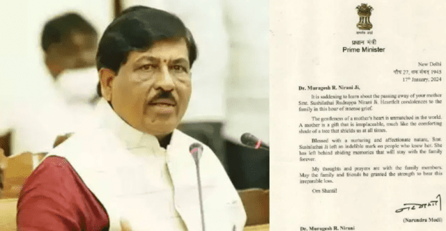 ಬಾಗಲಕೋಟೆ: ಇತ್ತೀಚೆಗಷ್ಟೇ ತಾಯಿಯನ್ನು ಕಳೆದುಕೊಂಡಿರುವ ರಾಜ್ಯ ಬಿಜೆಪಿ ಘಟಕದ ಉಪಾಧ್ಯಕ್ಷ ಮುರುಗೇಶ್ ನಿರಾಣಿ ಅವರಿಗೆ ಪ್ರಧಾನಿ ನರೇಂದ್ರ ಮೋದಿ ಅವರು ಸಾಂತ್ವನ ಹೇಳಿದ್ದಾರೆ.