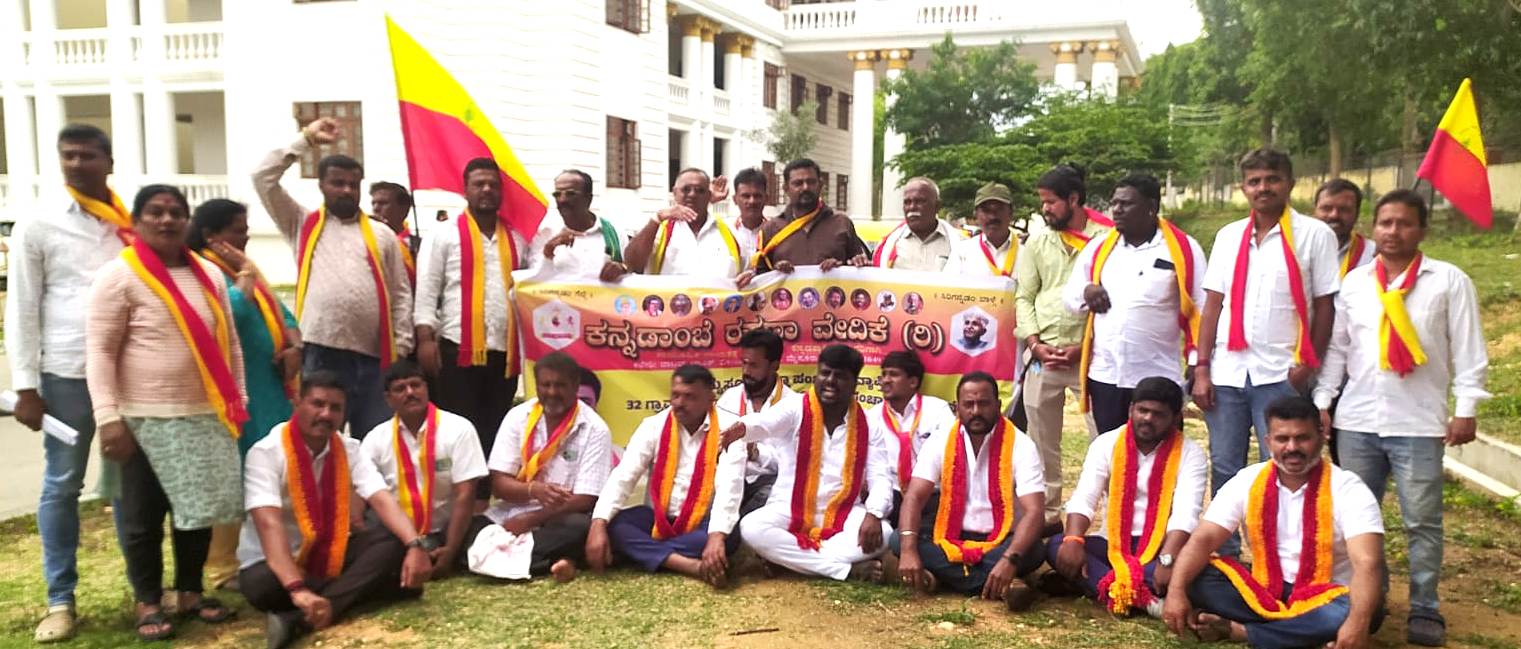 ಕನ್ನಡಾಂಬೆ ರಕ್ಷಣಾ ವೇದಿಕೆಯಿಂದ ಪ್ರತಿಭಟನೆ: ೩೨ ಪಿಡಿಓ ಅಮಾನತಿಗೆ ಆಗ್ರಹ, ಸಿಎಂ ಕಾರಿಗೆ ಮುತ್ತಿಗೆ ಎಚ್ಚರಿಕೆ