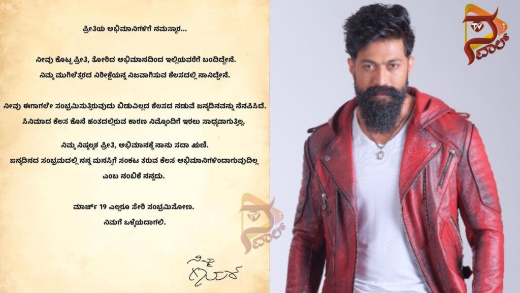 ಈ ವಿಶೇಷ ದಿನಕ್ಕೆ ಕೆಲವೇ ಕ್ಷನಗಳಿಗೂ ಮೊದಲೇ ಅಭಿಮಾನಿಗಳಿಗೆ ʻರಾಮಾಚಾರಿʼ ಒಂದು ಸಂದೇಶ ನೀಡಿದ್ದಾರೆ. ಈ ಸಲವೂ ರಾಕಿಂಗ್ ಸ್ಟಾರ್ ಯಶ್ ಹುಟ್ಟುಹಬ್ಬ ಆಚರಿಸಿಕೊಳ್ತಿಲ್ಲ.. ಬದಲಾಗಿ ಟಾಕ್ಸಿಕ್ ಸಿನಿಮಾದ ದೊಡ್ಡ ಸಂಭ್ರಮವನ್ನು ಮಾರ್ಚ್ 19 ರಂದು ಜೊತೆಯಾಗಿ ಆಚರಿಸೋಣವೆಂದು ಯಶ್ ಅಭಿಮಾನಿಗಳಿಗೆ ಮನವಿ ಮಾಡಿದ್ದಾರೆ.
