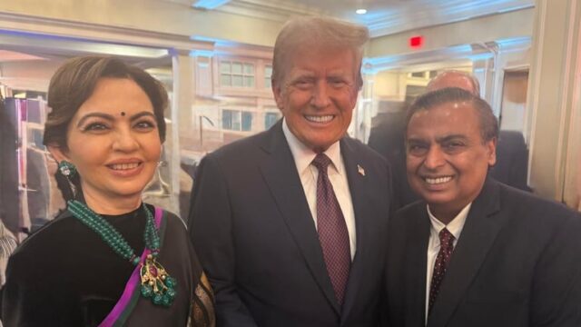 ಭಾರತದ ವಿದೇಶಾಂಗ ಸಚಿವ ಎಸ್ ಜೈಶಂಕರ್, ಉದ್ಯಮಿ ಮುಕೇಶ್ ಅಂಬಾನಿ ದಂಪತಿ ಸೇರಿದಂತೆ ಕೆಲವು ಗಣ್ಯರು ಟ್ರಂಪ್ ಪ್ರಮಾಣ ವಚನ ಸ್ವೀಕಾರ ಸಮಾರಂಭದಲ್ಲಿ ಭಾಗವಹಿಸಲಿದ್ದು, ಮುಕೇಶ್ ಅಂಬಾನಿ ಹಾಗೂ ನೀತಾ ಅಂಬಾನಿ ಈಗಾಗಲೇ ಅಮೆರಿಕಾದಲ್ಲಿ ಡೊನಾಲ್ಡ್ ಟ್ರಂಪ್ ಜೊತೆಗೆ ತೆಗೆಸಿಕೊಂಡ ಫೋಟೋಗಳು ಸೋಷಿಯಲ್ ಮೀಡಿಯಾದಲ್ಲಿ ಹರಿದಾಡುತ್ತಿವೆ.