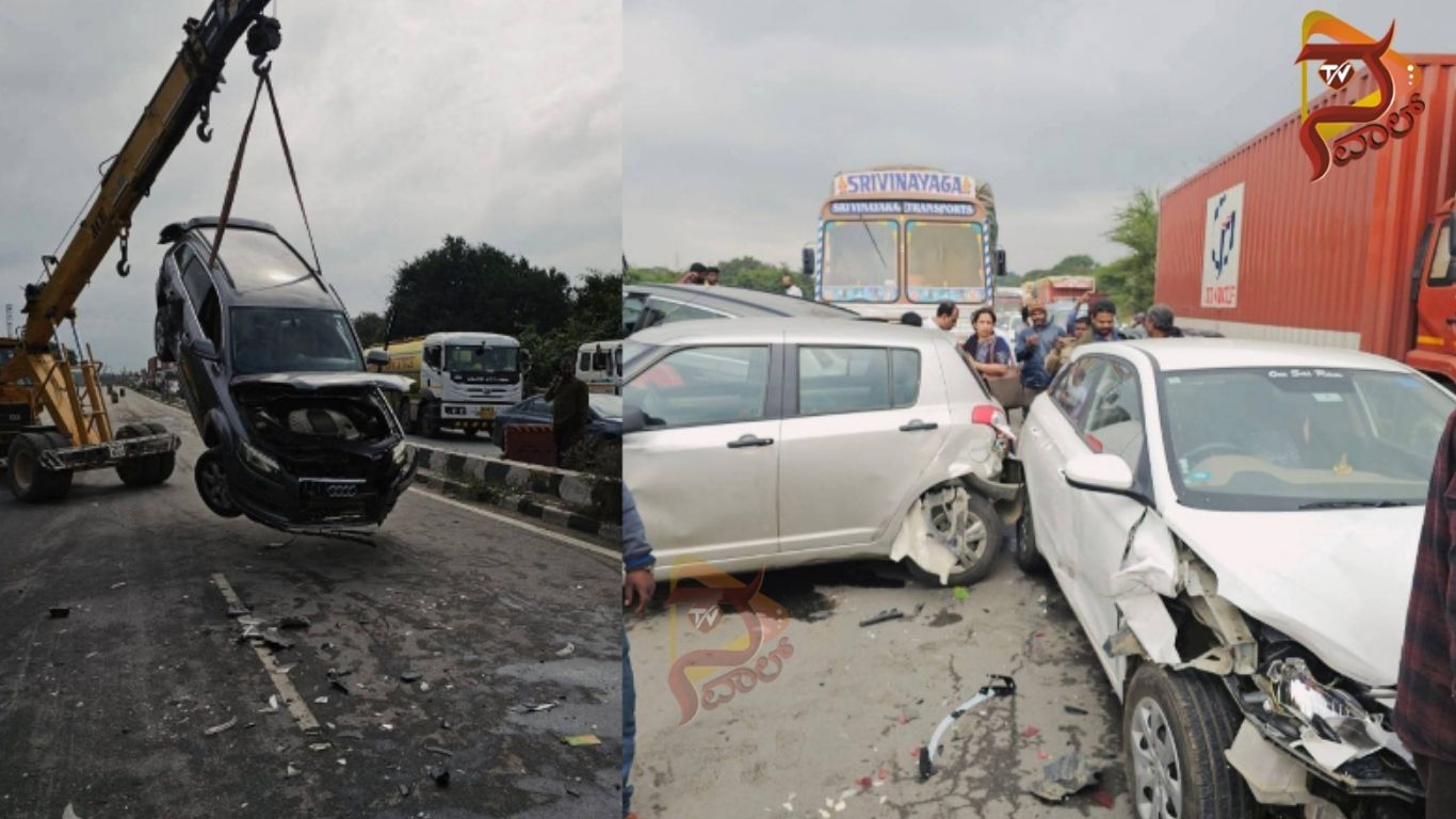 ಪೊಲೀಸರು ಕ್ರೇನ್ ಮೂಲಕ ಕಾರುಗಳನ್ನ ರಸ್ತೆಯಿಂದ ತೆರವು ಮಾಡಿದ್ದಾರೆ. ಗಾಯಾಳುಗಳನ್ನ ಹತ್ತಿರದ ಖಾಸಗಿ ಆಸ್ಪತ್ರೆಗೆ ದಾಖಲಿಸಲಾಗಿದೆ.