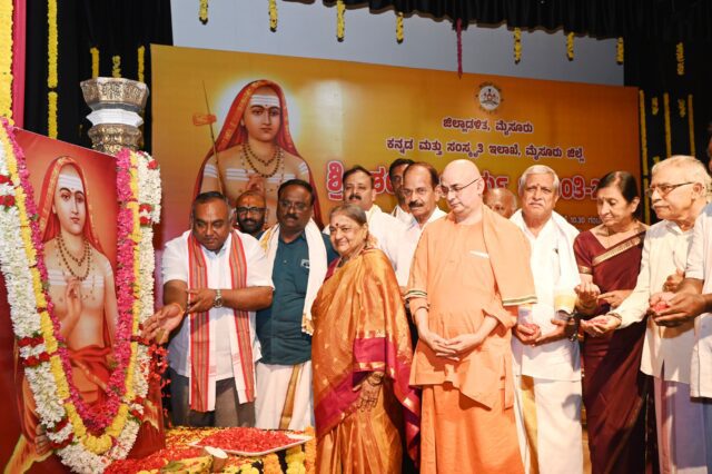ಇಂದು ಜಿಲ್ಲಾಡಳಿತ, ಕನ್ನಡ ಮತ್ತು ಸಂಸ್ಕೃತಿ ಇಲಾಖೆಯ ವತಿಯಿಂದ ಕರ್ನಾಟಕ ಕಲಾಮಂದಿರ ಆವರಣದ ಕಿರುರಂಗಮಂದಿರಲ್ಲಿ ಹಮ್ಮಿಕೊಳ್ಳಲಾಗಿದ್ದ ಶ್ರೀ ಶಂಕರಾಚಾರ್ಯರ ಜಯಂತಿಯನ್ನು ಉದ್ಘಾಟಿಸಿ ಮಾತನಾಡಿದರು. ಮಹಿಳೆಯರಿಗೆ ಅವರು ನೀಡುತ್ತಿದ್ದ ಗೌರವ ಅಪಾರವಾದದ್ದು, ಮಹಿಳೆಯರಿಗೆ ಹೆಚ್ಚು ಒತ್ತನ್ನು ನೀಡಿ ಮಹಿಳೆಯರು ಸಮಾಜದಲ್ಲಿ ಒಟ್ಟಾಗಿ ಇರಬೇಕು. ಅವರೂ ಸಹ ಸಮಾಜದಲ್ಲಿ ಸಮಾನತೆಯಿಂದ ಬದುಕಬೇಕು ಎಂದು ಹೇಳಿದವರು ಶಂಕರಚಾರ್ಯರು ಎಂದರು.