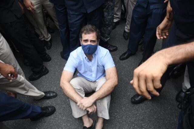 ಸೋನಿಯಾ ಅವರನ್ನು ವಿಚಾರಣೆಗೆ ಒಳಪಡಿಸುತ್ತಿರುವುದನ್ನು ವಿರೋಧಿಸಿ ರಾಹುಲ್ ಗಾಂಧಿ ಮತ್ತು ಕಾಂಗ್ರೆಸ್ ನಾಯಕರು ಪ್ರತಿಭಟನೆ ನಡೆಸಿದ್ದಾರೆ.