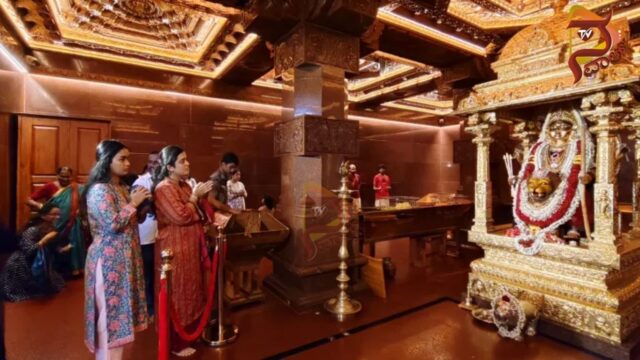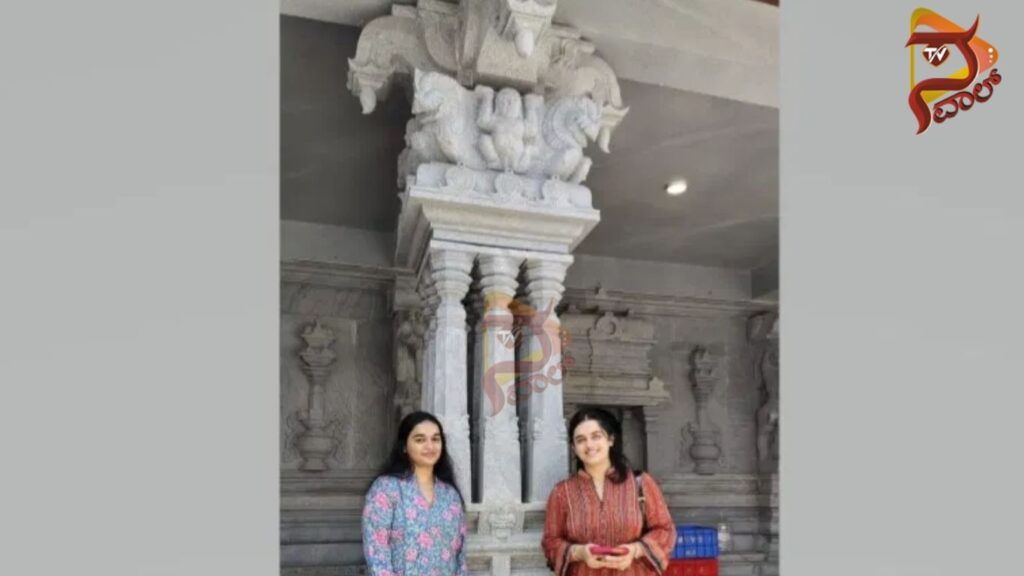 ದೇವಸ್ಥಾನದ ಪ್ರಾಂಗಣದ ಮುಂದಿರುವ ಬೃಹತ್ ಕಲ್ಲಿನ ಕಂಬವನ್ನು ಸೇವೆ ರೂಪದಲ್ಲಿ ಸೂರ್ಯಕುಮಾರ್ ದಂಪತಿ ಕೊಟ್ಟಿದ್ದರು. ಆ ಕಂಬದ ಮುಂದೆ ದೇವಿಶಾ ನಿಂತು ಫೋಟೋ ತೆಗೆಸಿಕೊಂಡಿದ್ದಾರೆ.