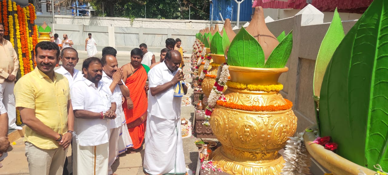 ದೇಶದ ಏಳು ಮಹಾನದಿಗಳ ಹೆಸರಿನಲ್ಲಿ ಇಡಲಾಗಿದ್ದ ಹದಿನೈದು ಪುಟ್ಟ ಕಳಸಗಳಿಗೆ ಕುಮಾರಸ್ವಾಮಿ ಅವರು ಶಾಸ್ತ್ರಬದ್ಧವಾಗಿ ಪೂಜೆ, ವಿಧಿ ವಿಧಾನ ನೆರವೇರಿಸಿದರು. ಸುಮಾರು ಎರಡು ಗಂಟೆಗಳ ಕಾಲ ನಡೆದ ಪೂಜಾ ಕೈಂಕರ್ಯ ಬೆಳಗ್ಗೆ 12 ಗಂಟೆಗೆ ಸಮಾಪ್ತಿಯಾಯಿತು.