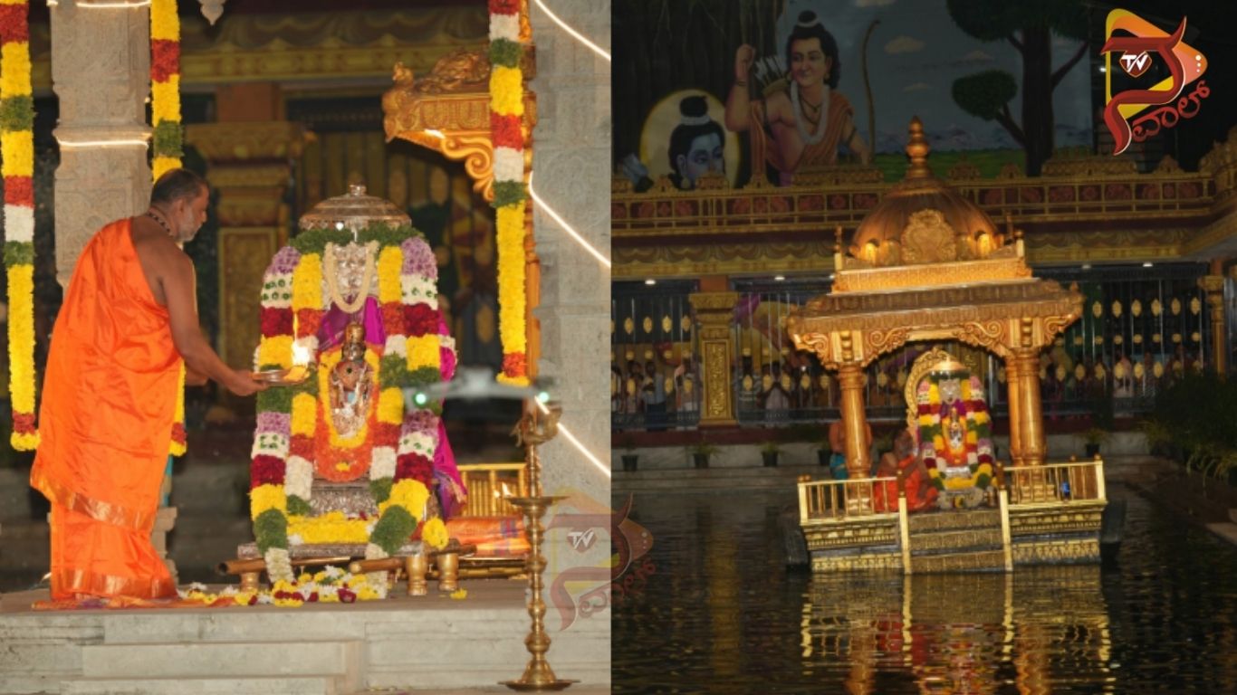 ರಾಯಚೂರು : ಮಂತ್ರಾಲಯದಲ್ಲಿ ಗುರುರಾಯರ ಗುರುವೈಭವೋತ್ಸವ ಸಂಭ್ರಮ ಮನೆ ಮಾಡಿದೆ. ಮಠದ ಅಂಗಳದ ಪುಷ್ಕರಣಿಯಲ್ಲಿ ರಾತ್ರಿ ವೇಳೆ ಅದ್ದೂರಿಯಾಗಿ ತೆಪ್ಪೋತ್ಸವ ನೆರವೇರಿಸಲಾಯಿತು.