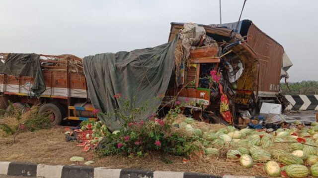 ಹೆದ್ದಾರಿ ಬದಿ ನಿಂತಿದ್ದ ಲಾರಿಗೆ ಮತ್ತೊಂದು ಲಾರಿ, ಟ್ರಕ್ ಡಿಕ್ಕಿಯಾಗಿ ಅವಘಡ ಸಂಭವಿಸಿದೆ. ಲಾರಿ ಚಾಲಕ ಹಾಗೂ ಕಲ್ಲಂಗಡಿ ಸಾಗಿಸುತ್ತಿದ್ದ ಟ್ರಕ್ ನಲ್ಲಿದ್ದ ಇಬ್ಬರು ಸಾವಿಗೀಡಾಗಿದ್ದಾರೆ.