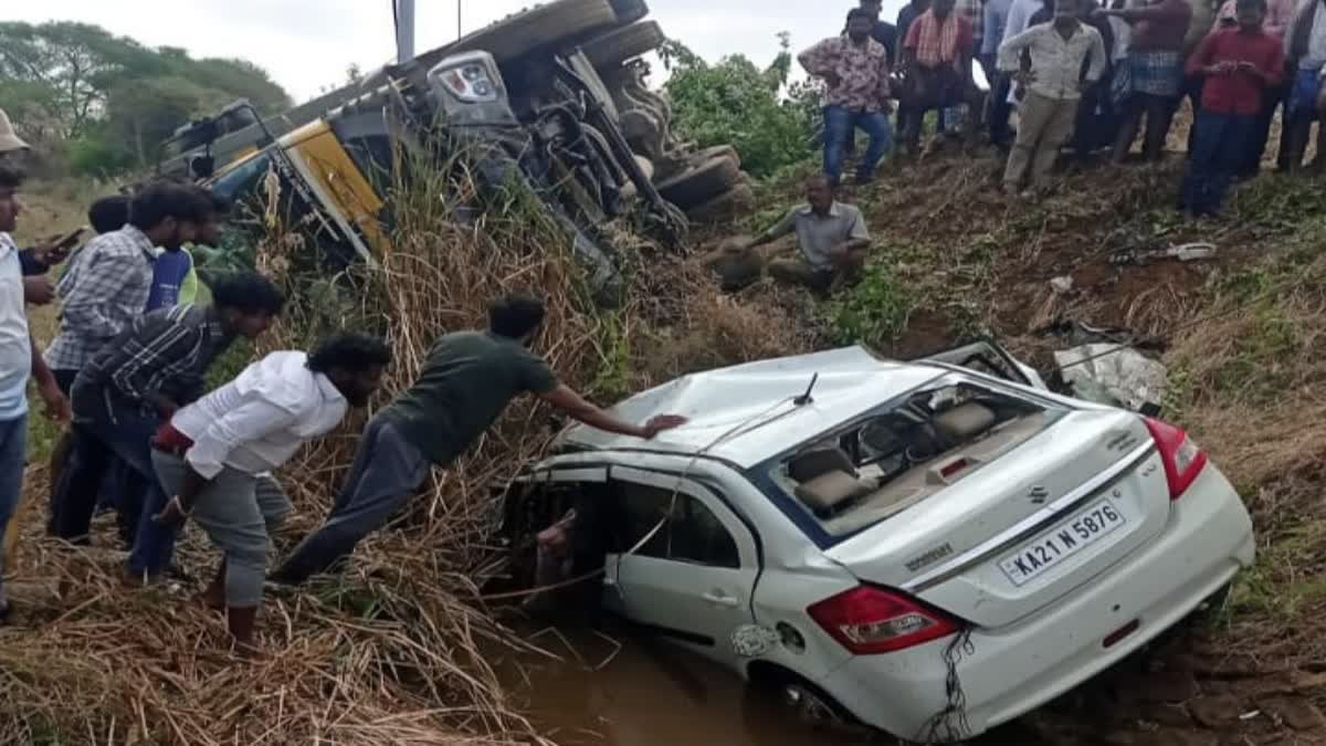 ಹನೂರು ಕಡೆಯಿಂದ ಬಂದ ಖಾಲಿ ಟಿಪ್ಪರ್ ಮತ್ತು ಕಾರಿನ ಮಧ್ಯೆ ಡಿಕ್ಕಿ ಸಂಭವಿಸಿ ಬಳಿಕ ಎರಡೂ ವಾಹನಗಳು ರಸ್ತೆ ಬದಿ ಪಲ್ಟಿಯಾಗಿವೆ. ಕೊಳ್ಳೇಗಾಲ ಗ್ರಾಮಾಂತರ ಠಾಣೆ ಪೊಲೀಸರು ಶವಗಳನ್ನು ಕೊಳ್ಳೇಗಾಲ ಉಪವಿಭಾಗ ಆಸ್ಪತ್ರೆಗೆ ರವಾನೆ ಮಾಡಿ ಮುಂದಿನ ಕ್ರಮ ಕೈಗೊಂಡಿದ್ದಾರೆ. ಅಪಘಾತದ ಬಳಿಕ ಟಿಪ್ಪರ್ ಚಾಲಕ ಪರಾರಿಯಾಗಿದ್ದಾನೆ. KA 21 N5876 ನೋಂದಣಿ ಇರುವ ಕಾರು ಅಪಘಾತಕ್ಕೀಡಾಗಿದ್ದು, ನುಜ್ಜುಗುಜ್ಜಾಗಿದೆ.