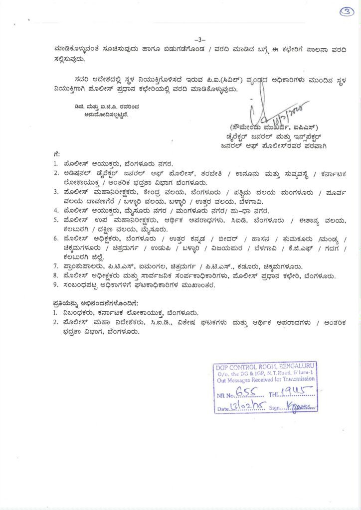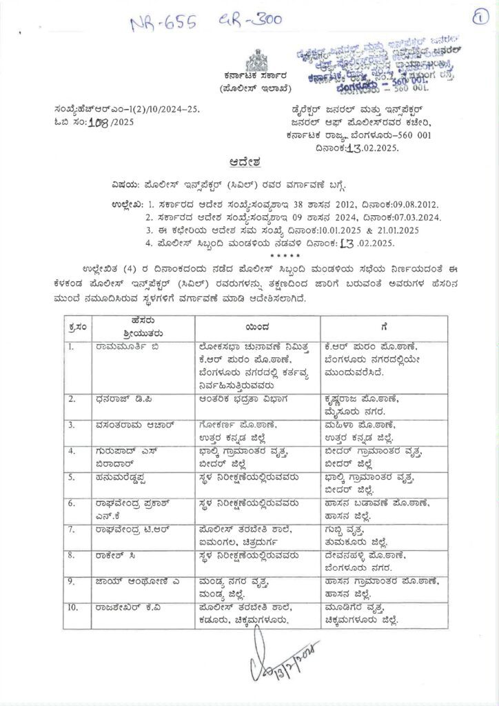 ಮೈಸೂರಿಗೆ ಸಂಬಂಧಿಸಿದಂತೆ ಆಂತರಿಕ ಭದ್ರತಾ ವಿಭಾಗದಲ್ಲಿ ಕಾರ್ಯನಿರ್ವಹಿಸುತ್ತಿದ್ದ ಧನರಾಜ್ ಡಿ.ಪಿ. ಅವರನ್ನು ಕೃಷ್ಣರಾಜ ಪೊಲೀಸ್ ಠಾಣೆಗೆ ವರ್ಗಾವಣೆ ಮಾಡಲಾಗಿದೆ.