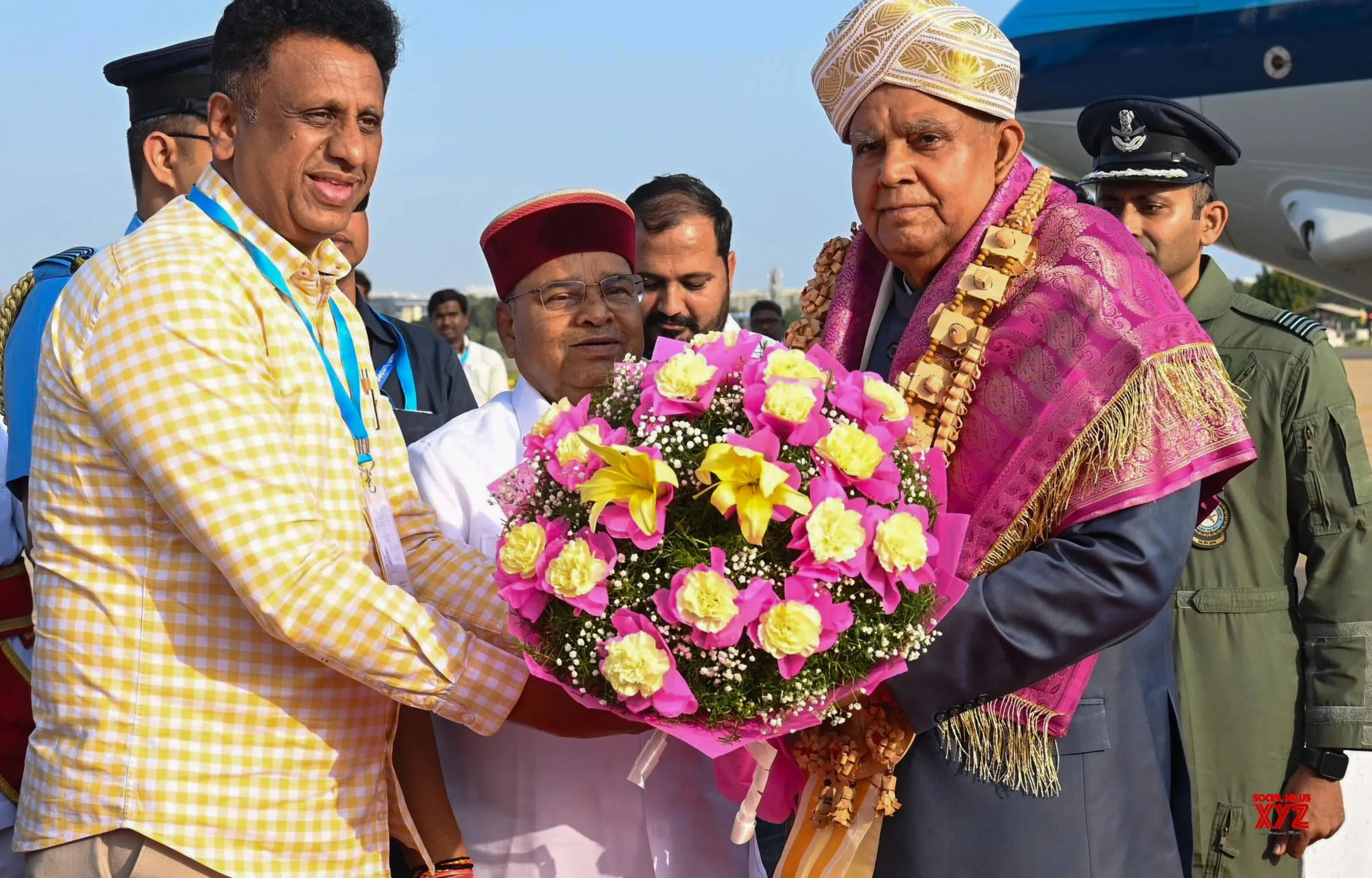 ಬೆಂಗಳೂರು: ಭಾರತದ ಉಪರಾಷ್ಟ್ರಪತಿ ಜಗದೀಪ್ ಧನಕರ್ ಅವರು ಇಂದು ಬೆಂಗಳೂರಿಗೆ ಆಗಮಿಸಿದ್ದು, ನಗರದಲ್ಲಿ ವಿವಿಧ ಅಧಿಕೃತ ಕಾರ್ಯಕ್ರಮಗಳಲ್ಲಿ ಭಾಗವಹಿಸಲಿದ್ದಾರೆ. ಬೆಂಗಳೂರಿನ ಎಚ್.ಎ.ಎಲ್. ವಿಮಾನ ನಿಲ್ದಾಣದಲ್ಲಿ ಉಪರಾಷ್ಟ್ರಪತಿ ಧನಕರ್ ಅವರಿಗೆ ಭವ್ಯ ಸ್ವಾಗತ ಕಲ್ಪಿಸಲಾಯಿತು.