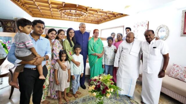 ಬೆಂಗಳೂರು: ಕರ್ನಾಟಕ ಪ್ರವಾಸದಲ್ಲಿರುವ ಉಪ ರಾಷ್ಟ್ರಪತಿ ಜಗದೀಪ್ ಧನಕರ್ ಹಾಗೂ ಧನಕರ್ ಪತ್ನಿ ಇಂದು ಬೆಳಗ್ಗೆ ಪದ್ಮನಾಭನಗರದಲ್ಲಿರುವ ಮಾಜಿ ಪ್ರಧಾನಿ ಹೆಚ್.ಡಿ.ದೇವೇಗೌಡರ ನಿವಾಸಕ್ಕೆ ಭೇಟಿ ನೀಡಿದ್ದಾರೆ.