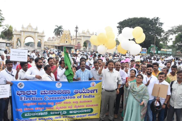 ಸ್ವೀಪ್ ಸಮಿತಿ ಸಹಯೋಗದಲ್ಲಿ ಕರ್ನಾಟಕ ವಿಧಾನಸಭಾ ಚುನಾವಣೆ-2023ರ ಹಿನ್ನಲೆಯಲ್ಲಿ ಮತದಾನ ಜಾಗೃತಿ ಕಾರ್ಯಕ್ರಮದ ಅಂಗವಾಗಿ ಜಿಲ್ಲಾ ಮಟ್ಟದ ಅಧಿಕಾರಿಗಳು ಹಾಗೂ ಸಿಬ್ಬಂದಿ ವರ್ಗದವರು ಸೇರಿದಂತೆ ನೂರಾರು ನೌಕರರು ಬೈಕ್ ರ್ಯಾಲಿಯಲ್ಲಿ ಪಾಲ್ಗೊಂಡು ಮತದಾನದ ಕುರಿತು ಅರಿವು ಮೂಡಿಸಿದರು.