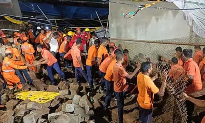 ರಕ್ಷಣಾ ಕಾರ್ಯಾಚರಣೆ: ಘಟನೆಯಾದ ತಕ್ಷಣವೇ ರಾಷ್ಟ್ರೀಯ ವಿಪತ್ತು ನಿರ್ವಹಣಾ ಪಡೆ (NDRF) ಹಾಗೂ ರಾಜ್ಯ ವಿಪತ್ತು ನಿರ್ವಹಣಾ ಪಡೆ (SDRF) ಸ್ಥಳಕ್ಕೆ ಧಾವಿಸಿ ರಕ್ಷಣಾ ಕಾರ್ಯ ಆರಂಭಿಸಿವೆ. ಅವಶೇಷಗಳಡಿಯಲ್ಲಿ ಸಿಲುಕಿದ್ದವರನ್ನು ಹೊರತೆಗೆದು ಚಿಕಿತ್ಸೆಗಾಗಿ ರವಾನಿಸಲಾಗಿದೆ. ಸ್ಥಳದಲ್ಲಿ ಇನ್ನುಮತ್ತಷ್ಟು ಜನರು ಸಿಲುಕಿರುವ ಶಂಕೆ ವ್ಯಕ್ತವಾಗಿದ್ದು, ಶೋಧ ಕಾರ್ಯಾಚರಣೆ ಮುಂದುವರಿದಿದೆ.